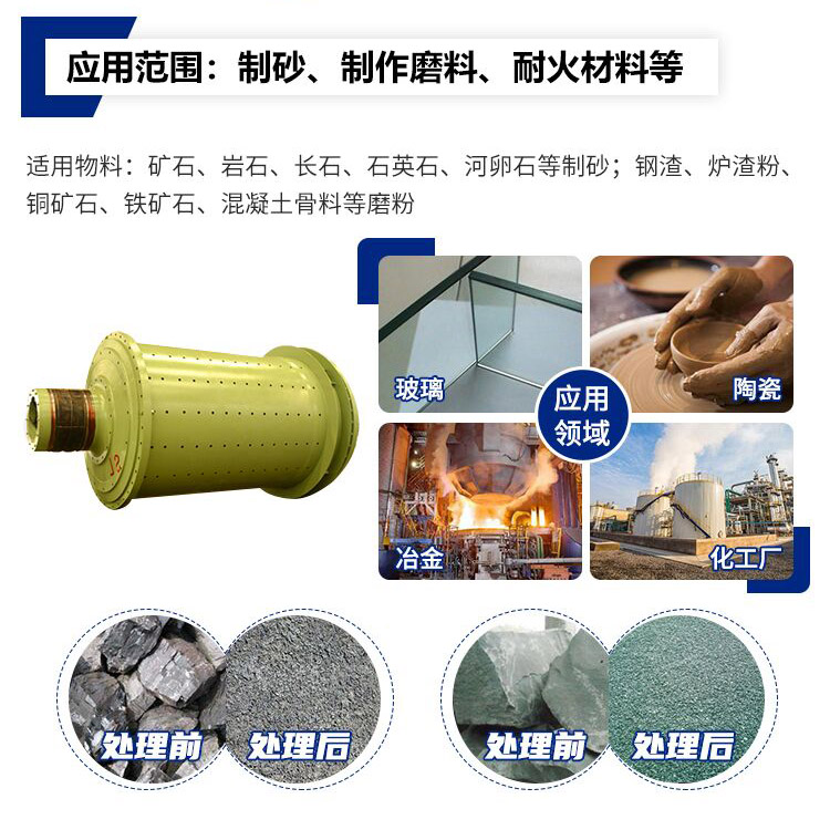 棒磨機廣泛用于金屬和非金屬礦山及水利.建材部門粉磨各種礦石或巖石。